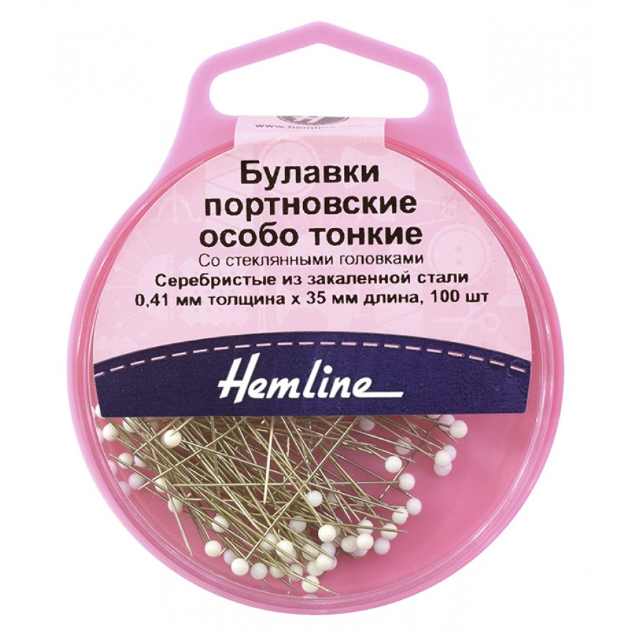 Булавки портновские особо тонкие со стеклянными головками, 41 мм, 100 шт, цвет белый 41 мм головки белые 0,5 мм HEMLINE 674