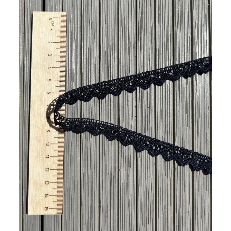 Мерсеризованное хлопковое кружево, 14 мм, цвет темно-синий